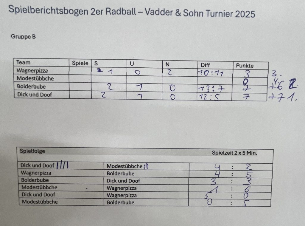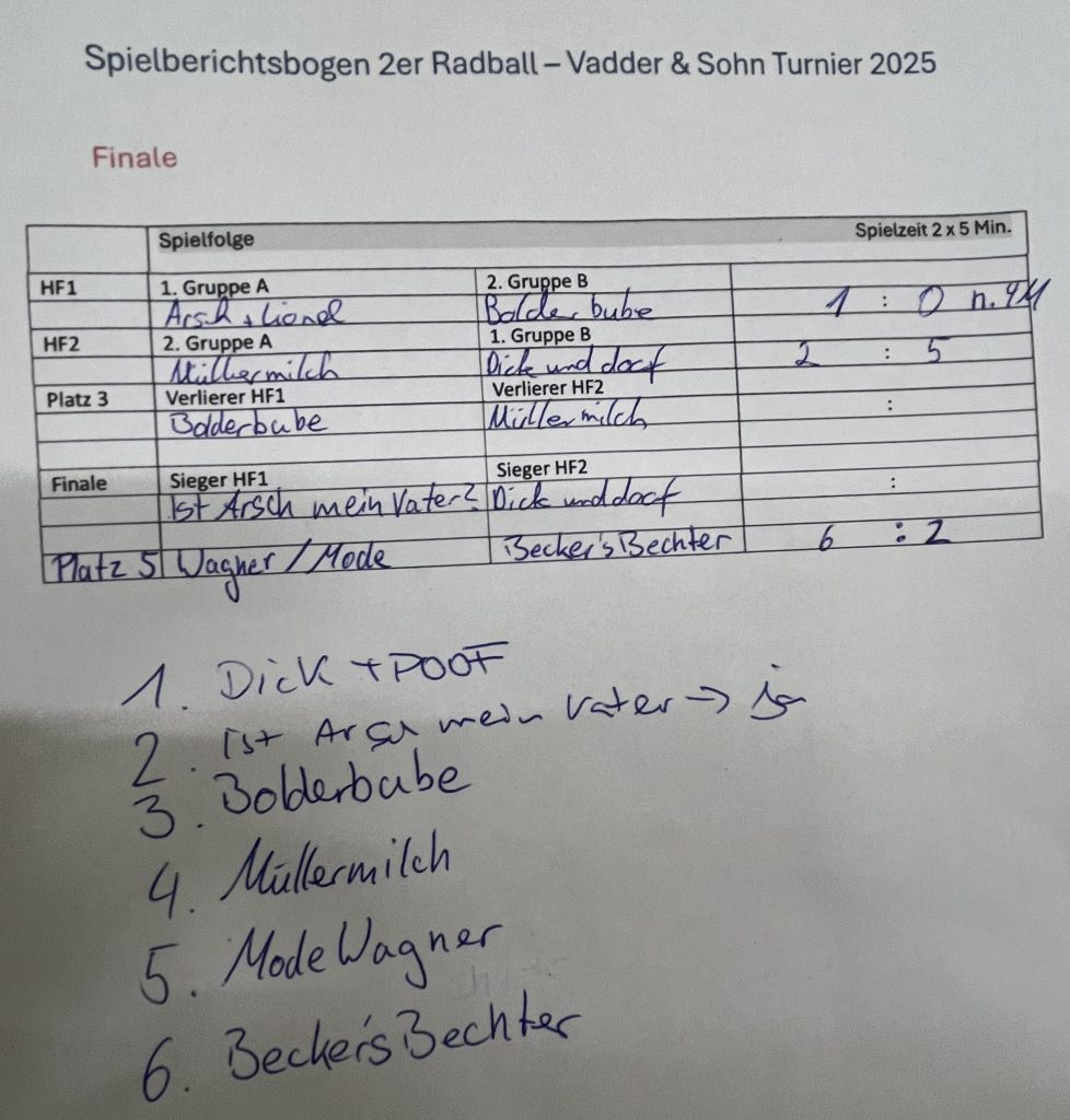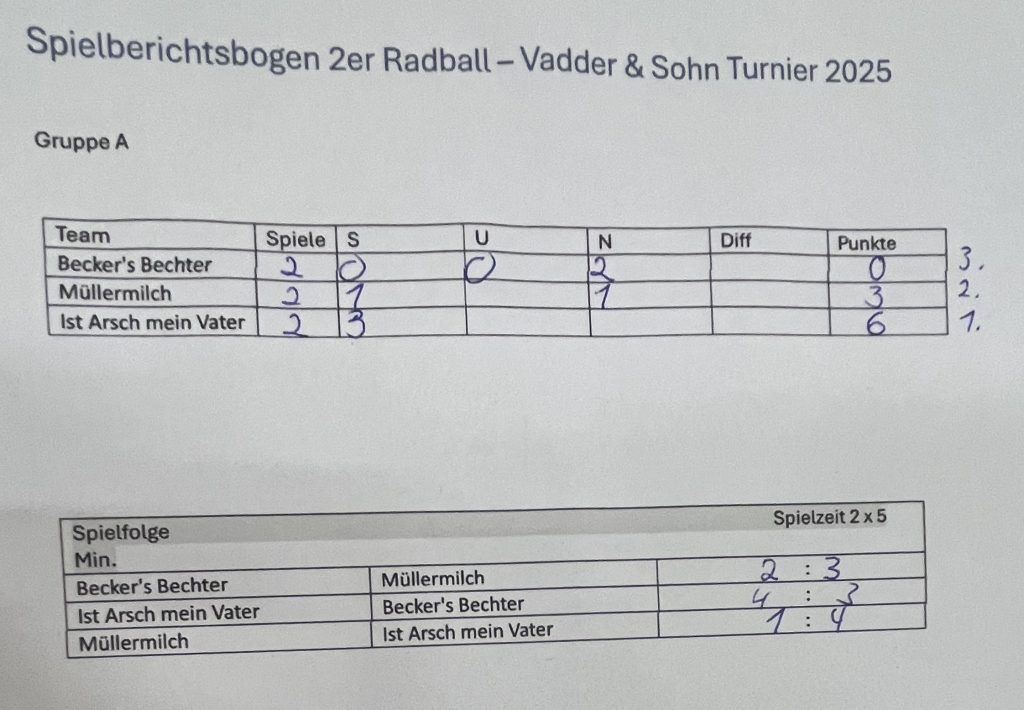Am 08.12.2025 erfuhr das in 2024 erstmals ausgespielte „Vater und Sohn Turnier“ eine zweite Auflage mit 7 Mannschaften, um den „Vereinsmeister“ der Väter und Söhne auszuspielen. Am Start waren:
