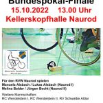 | 10 | 11 | 12 | 13 | 14 | 15Bundespokalfinale im Radpolo der MännerBundespokalfinale im Radpolo der MännerUhrzeit: 13:00 RVW Naurod I mit Manuela Alsbach / Lukas AlsbachRVW Naurod II mit Melina Balder / Jürgen Becht RV Schwalbe Aßlar RC Wendelstein 1 Kellerskopfhalle Laurentiusstraße 35-38 65207 Wiesbaden Naurod | 16 | ||||||||